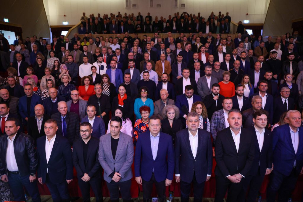 În primul rând al sălii, europarlamentari, miniștri, senatori, deputați și primarii municipiilor din județul Buzău, dar și Sorin Grindeanu, președinte interimar al PSD, venit special pentru a-și susține colegul și prietenul.